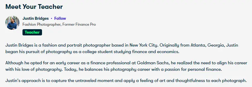 - 📝Instructor(s): Justin Bridges (Justin Bridges is a fashion and portrait photographer based in New York City.)