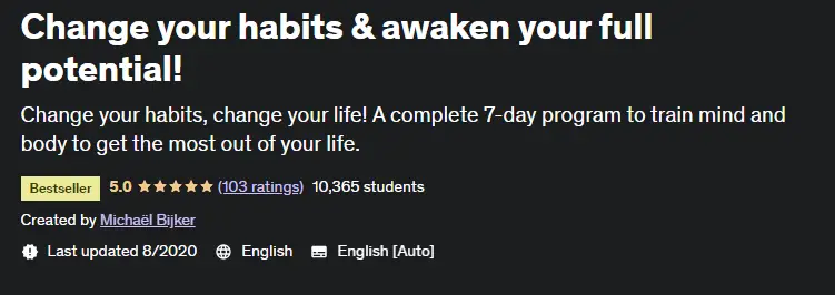 | #9. Change your habits & awaken your full potential! | Michaël Bijker | $74.99 | ❤️❤️10,365 enrollments (as of Feb 2023) | ⭐⭐⭐⭐⭐5.0 (103 reviews as of Feb 2023) | ⌛⌛ 5h 48m |